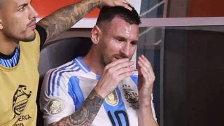 ベンチで涙するメッシ。(C)Getty Images その痛々しい傷が激闘を物語った。 現地時間7月14日、南米選手権(…