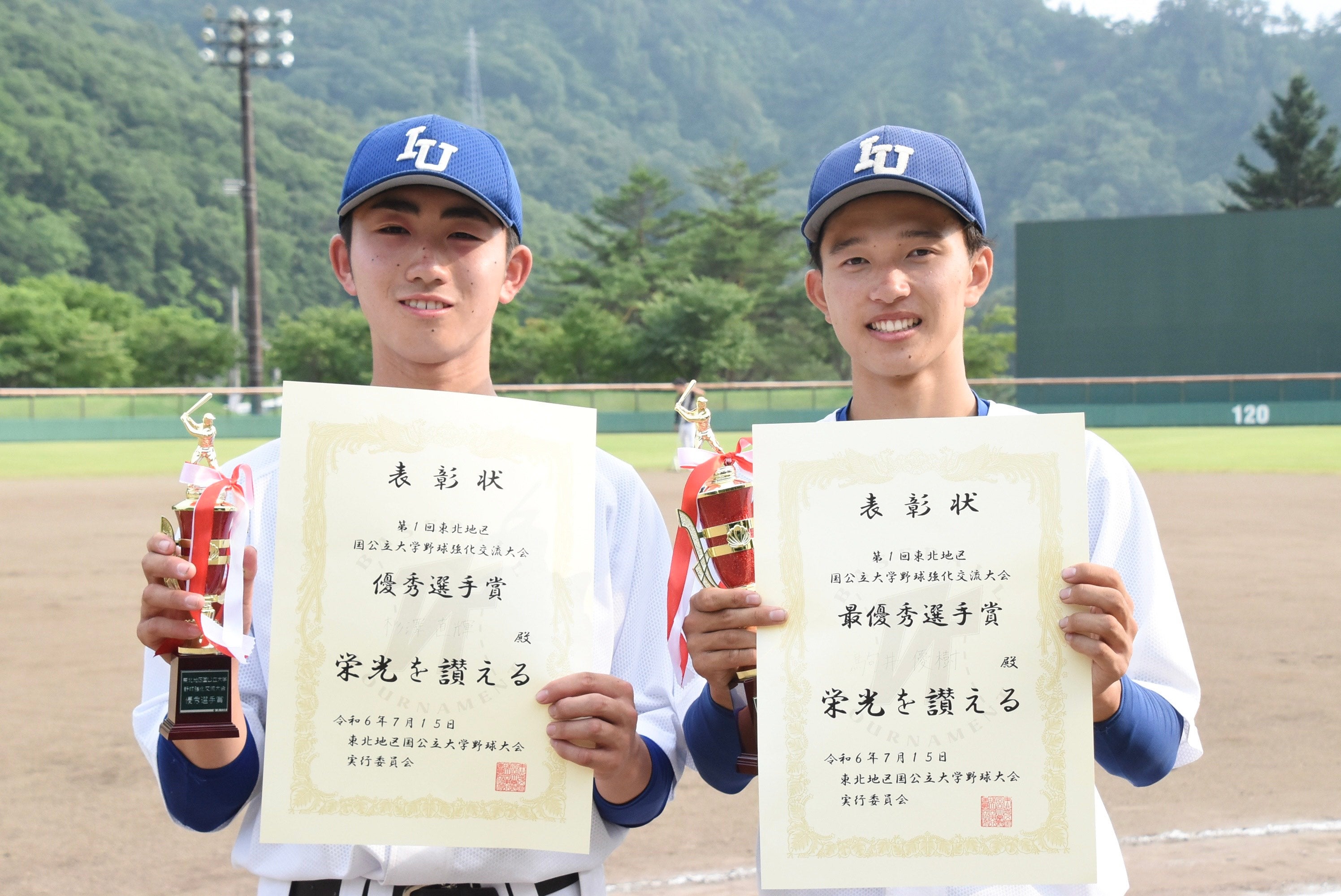 決勝打の駒井は最優秀選手賞、6回1失点と好投した杉澤は優秀選手賞を獲得。二人は盛岡三時代からの同期だ。駒井は主軸を打つ正遊撃手、杉澤は最速142キロの速球を武器に持つリリーフ右腕として活躍した。