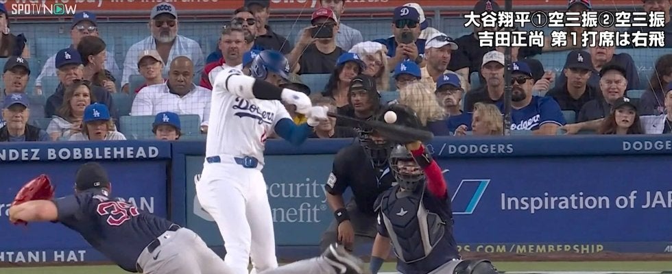 その3球目に藤川氏の言った通りストレートが高めに投じられるも捉えられずファール。4球目は変化球が抜けてカウントは1ボール2ストライクに。レッドソックスバッテリーは勝負球にカットボールを選択。ここでも大谷のバットは空を切り、3打席連続空振り三振に仕留められた。ストレート中心だった第2打席と打って変わって変化球が多くなったことからも、レッドソックスベンチの対策が窺える。