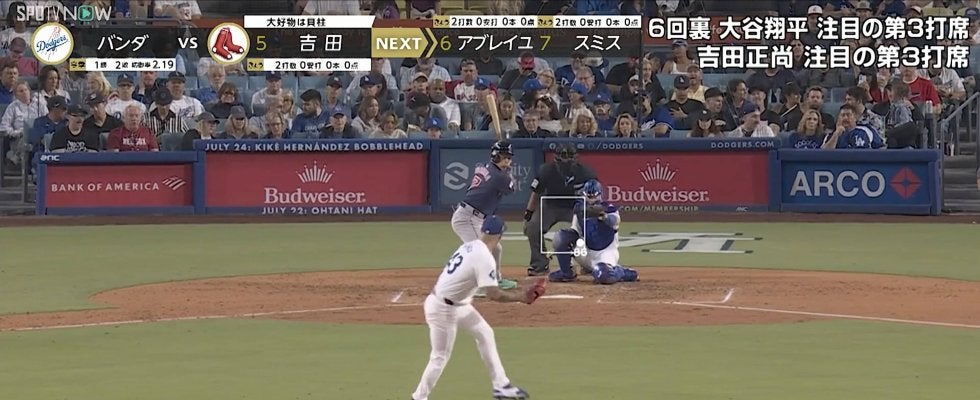 レッドソックスが1-0と1点リードで迎えた6回表、1死一塁で吉田はこの試合3度目の打席を迎えた。マウンド上には2番手のバンダ投手。カウント1ボール1ストライクから投じたスライダーは、アウトコース低めにズバリと決まり、吉田は追い込まれてしまった。
