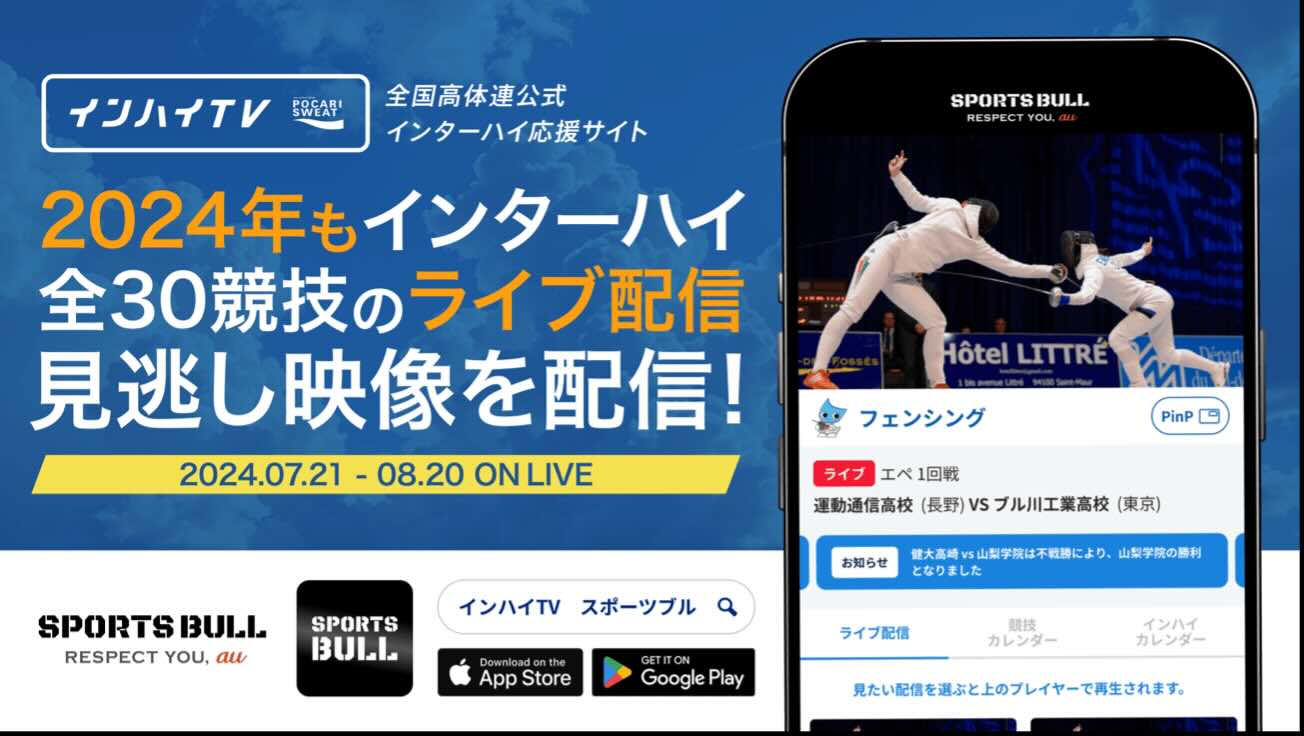 2024年も「SPORTS BULL(スポーツブル)」と「インハイ.tv」が連携し、 インターハイ夏季大会の全競技ライブ中継を実施 また、新たにオリジナルグッズとDVDの販売を開始! | インターハイ(インハイ.tv)