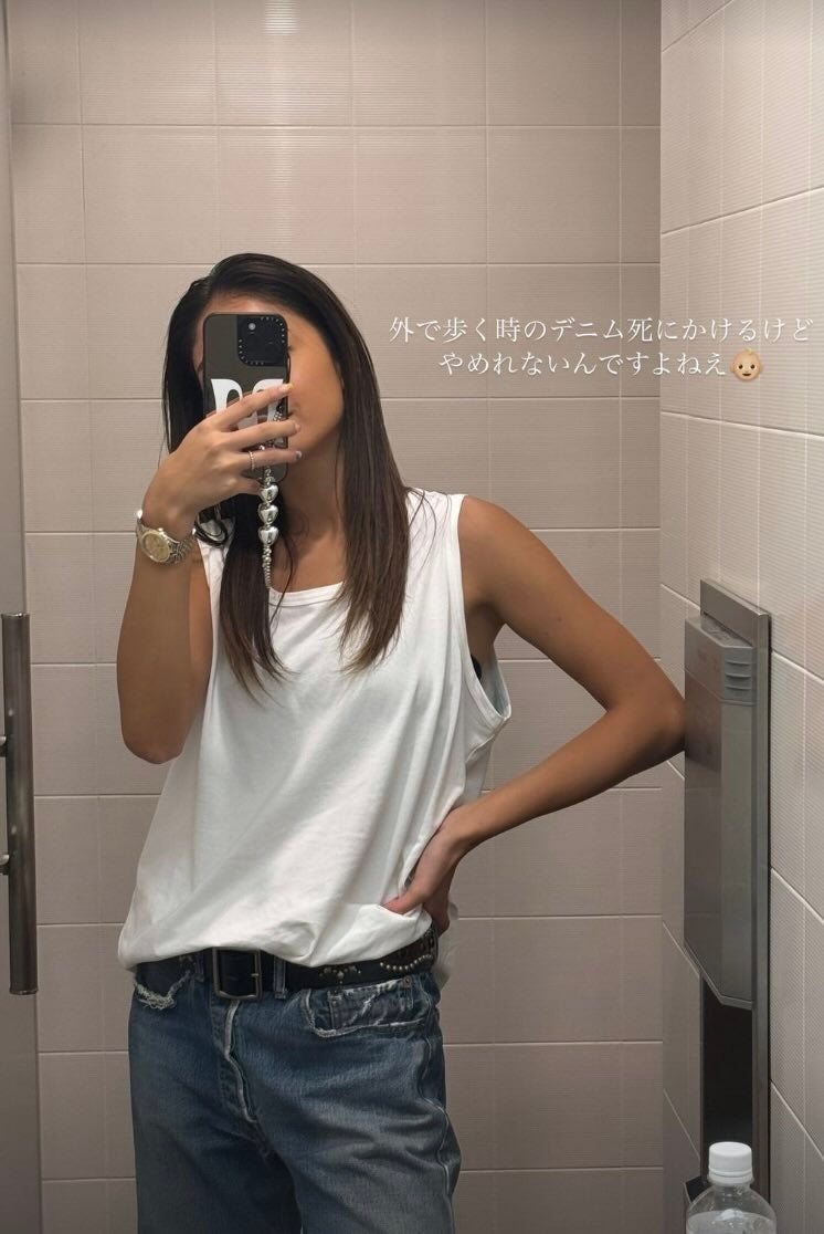 「外で歩く時のデニム死にかけるけどやめられないんですよねぇ👶」と綴り、ストーリーを更新。