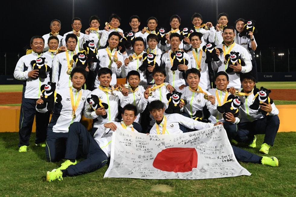 前回の2015年韓国・光州大会は雨天中止による台湾との「両国金メダル」という不本意な結果に終わったが、今回は台湾・台北の地で選手・スタッフ全員が喜びを分かち合った。