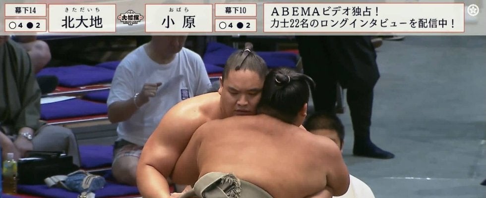 力士よりも目立ってしまった行司の体格……幕下十四枚目・北大地(立浪)と幕下十枚目・小原(浅香山)の取組では両力士が長らく組み合う展開となったが、行司を務めた木村千鷲のタッパが「マジでデカい」と注目を集めた。