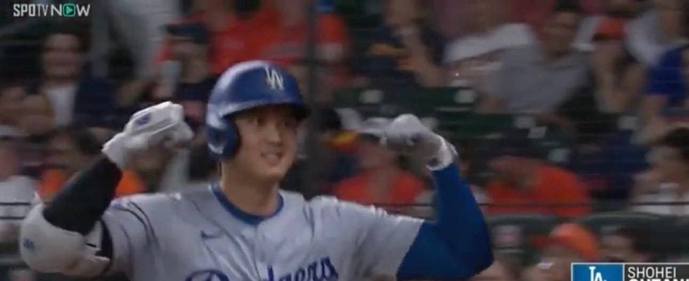 こんな大谷翔平は見たことない…!? テンション爆上がりの“マッチョポーズ” 超特大アーチ後にチームメイトに見せたリアクションが話題に
