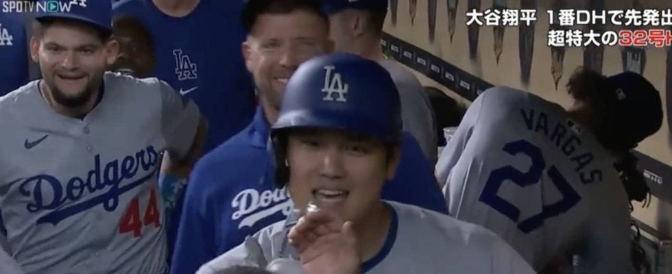 あの動きはなんだ…!? 大谷翔平、超特大アーチ直後のベンチで見せた“リアクション”が話題に「なにこれ新作?」「テンション高すぎw」