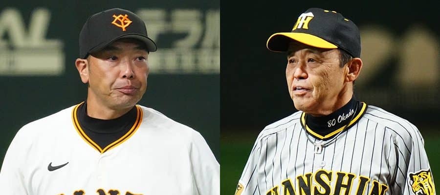 巨人・阿部慎之助監督(左)と阪神・岡田彰布監督【写真:荒川祐史】