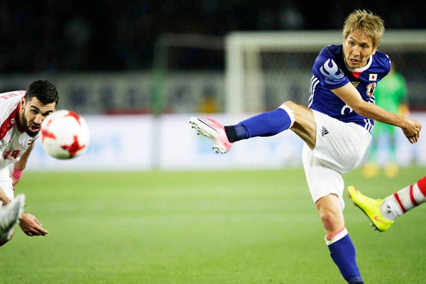 だがそれは、日本の戦略でもあった。オーストラリアとは逆に、今の日本はボール支配率を高めてゲームを進めることに重きを置いていない。あえてオーストラリアにボールを持たせ、日本は自陣で守備ブロックをしっかりと組み、カウンターを繰り出していく。5分には早くも狙いどおりの速攻からFW原口元気(ヘルタ・ベルリン)が先制ゴール。後半にPKを奪われなければ、あるいは2度あったカウンターのチャンスのどちらかを仕留めていれば、勝ち点3が獲得できた。