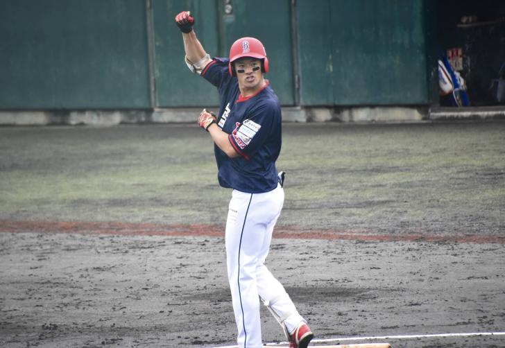 7月29日、天童市スポーツセンター野球場で行われた東北マークス戦。敗戦の中、4番に座った新井諒内野手(28)は四球と二塁打で2度出塁し、気を吐いた。