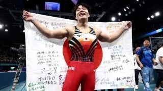 20歳の岡慎之助が体操個人総合で金メダルを獲得した(C)Getty Images パリ五輪の体操男子個人総合決勝が行われ…