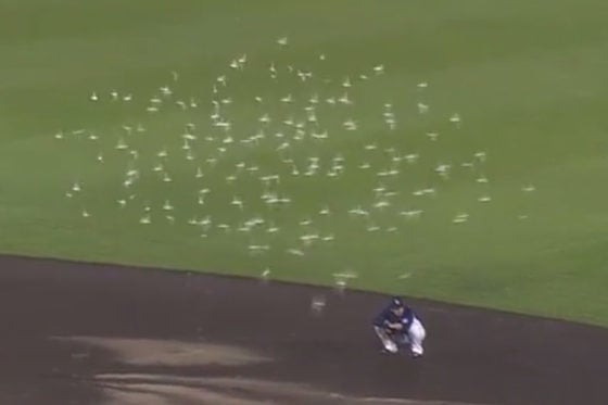 Koboパーク宮城で珍事 鳥の群れが襲来、グラウンド旋回で試合再開できず | 野球