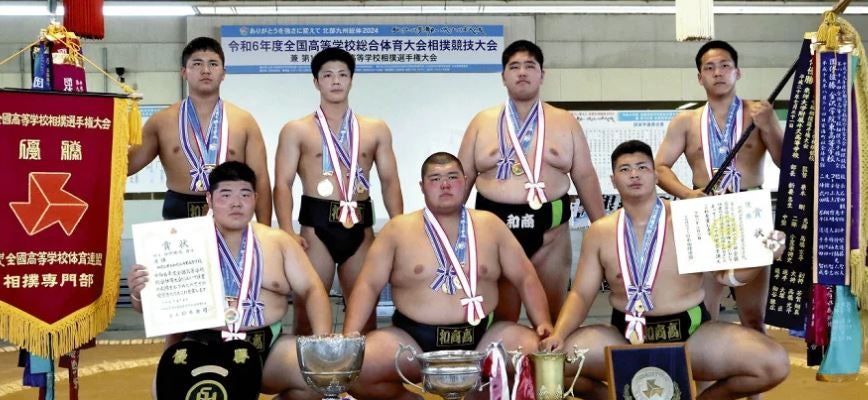 全国高校総体(インターハイ=読売新聞社共催)は2日、新たに重量挙げ、空手、テニスなどが始まり、福岡、佐賀、長崎、大分、北海道、福島の6道県で9競技が行われた。相撲団体では和歌山商が63年ぶりの優勝を果たした。個人でも和歌山商の西出大毅選手が連覇を果たした。