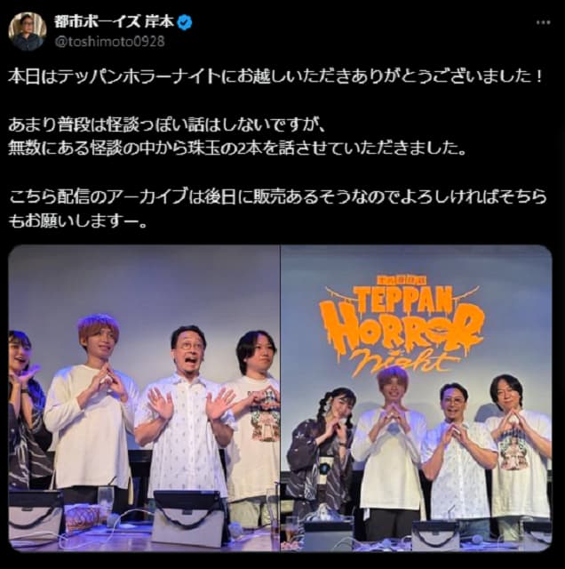 人気オカルト系YouTuber「都市ボーイズ」の岸本誠は8月3日、自身のXを更新した。【画像】怪談話でお馴染みの稲川淳二…