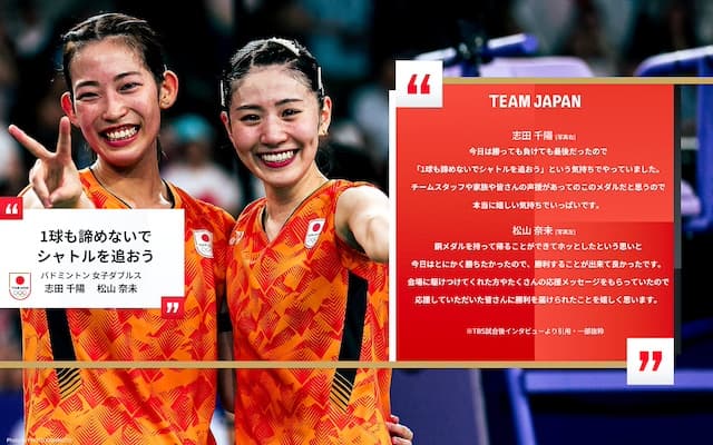 TEAM JAPAN(日本オリンピック委員会(JOC))の公式Xアカウントが、4日、シダマツペアのコメントを投稿した。【…