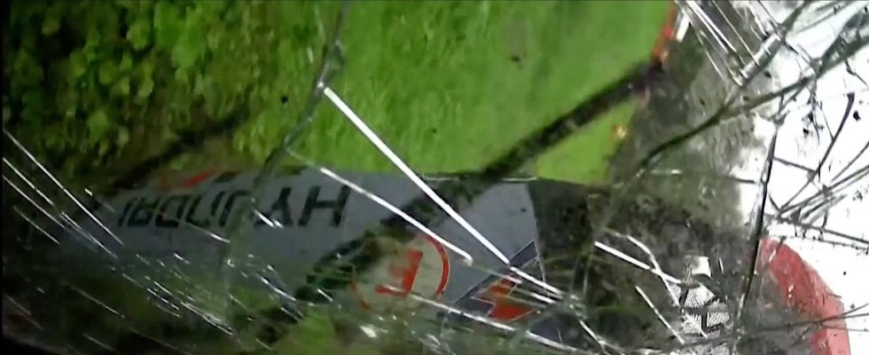 車載カメラには、車体がひっくり返って転覆し、ガラスがひび割れるショッキングなシーンが映し出されている。マシンはコースから1~2メートルほど落下しており、解説で全日本ラリー選手権でコ・ドライバー経験もある小坂典嵩氏も「クラッシュしてクルマがゴロっとひっくり返った。結局リタイアになってしまった」と言及した。