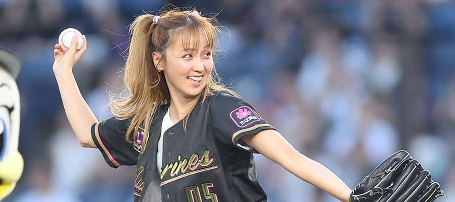 元E-girlsのDream Amiさんがセレモニアルピッチに登場■ロッテ ー ソフトバンク(6日・ZOZOマリン) 人…