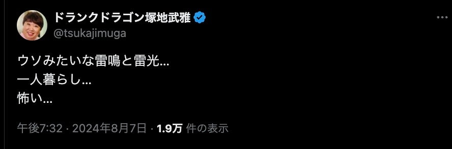 「一人暮らし… 怖い…」ドランクドラゴン・塚地のポストが話題に | 話題の投稿