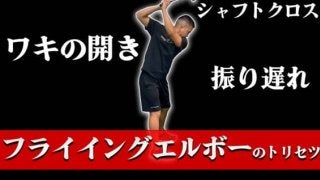 フライイングエルボーとは、バックスイングの際に脇が開いてしまうスイングのことを言います。