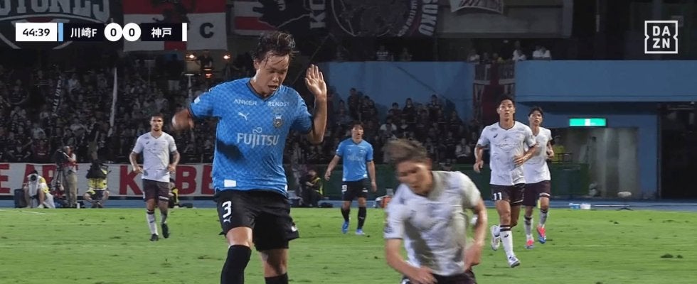 J1リーグで優勝戦戦に絡む4位につける神戸が、上位進出をかけて川崎のホームに乗り込んだこの一戦。試合を大きく左右した際どいシーンは、前半終了間際の45分に発生した。