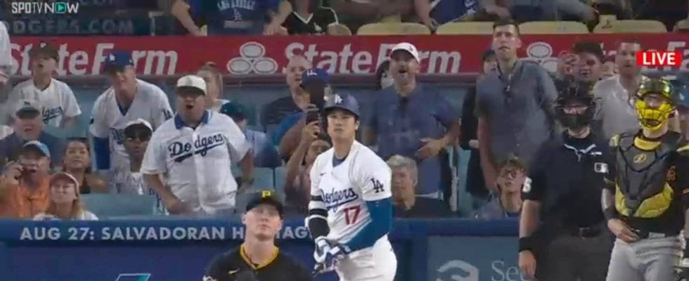 ドジャースの大谷翔平投手が放った、飛距離448フィート(約136.6メートル)の特大弾にスタジアムのファンが驚愕した。