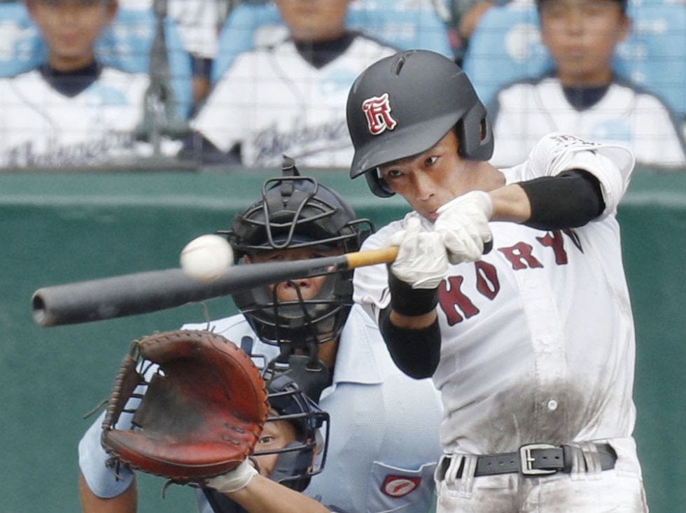 天理-広陵 7回表広陵2死満塁、中村が左翼線に走者一掃の適時二塁打を放つ=甲子園【写真提供:共同通信社】 聖地に名…