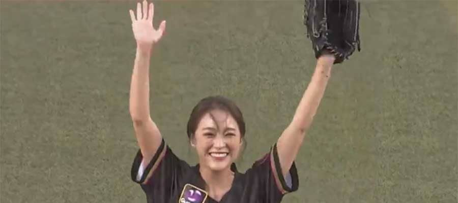 【実際の映像】抜群スタイルからファン魅了の一投 人気歌手の始球式