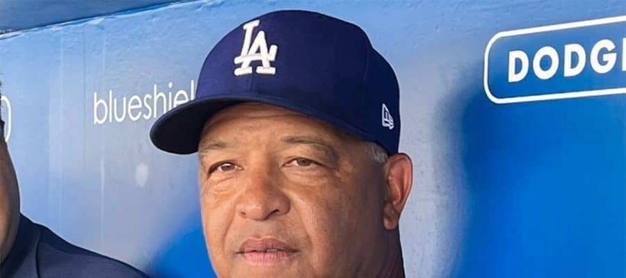 試合前の取材に応じたドジャースのデーブ・ロバーツ監督【写真:川村虎大】