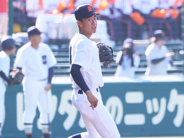 近年の高校野球は、筋骨隆々の選手が目立つようになってきたが、中村は長身のスリム体型で、美しいシルエット姿が映える。長い手足をよどみなく柔らかくしならせ、指先にかかったボールが、鮮やかなスピンが効いて真っすぐに糸を引くように伸びていく。見とれるようなぐんぐん伸びていく遠投だ。