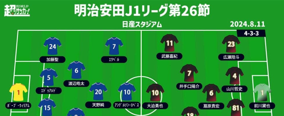 【明治安田J1リーグ第26節】 2024年8月11日(日) 19:30キックオフ 横浜F・マリノス(9位/35pt) v…