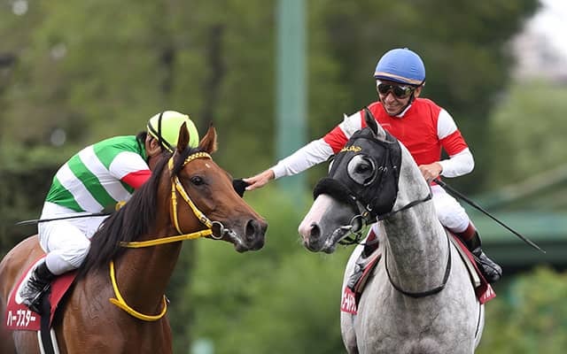 引き上げてくる際、ハープスターの川田将雅騎手とゴールドシップの横山典弘騎手は、馬上でガッチリと握手。健闘をたたえ合う姿も、レースと同じぐらいに印象的だった。