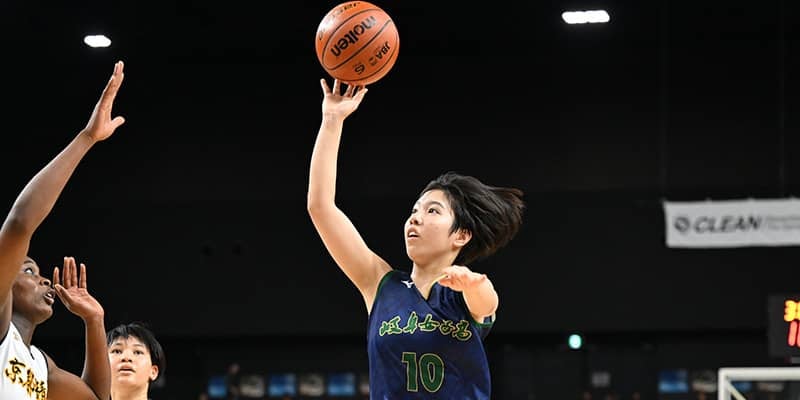 三宅は、「私は大きい選手に付かれることが多いので、スピードのミスマッチを生かしたり、3ポイントシュートを決め切たりすればチームに流れが来ると思って、自分のシュートは確実に決め切ろうという気持ちでいました」と、今大会では果敢にリングに向かう姿勢など、得点への意欲を強く感じさせた選手。決勝でも両チーム合わせて最多となる20得点を奪取し、3ポイントシュートやドライブなど、特に前半は積極的な攻めでチームにリズムをもたらした。また、前日の東海大学付属福岡高校(福岡県)との準決勝でも10得点6リバウンドをマーク。相手の変則ディフェンスに手を焼きながらも48−47と僅差での勝利に大きく貢献している。