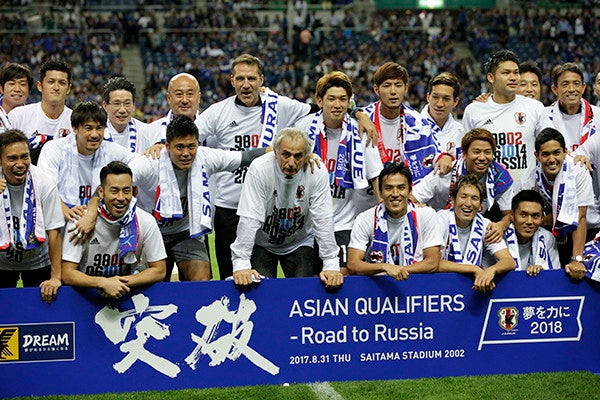 オーストラリア戦に勝利し、ロシアW杯出場を喜ぶ日本代表