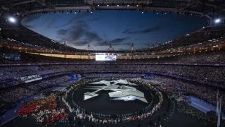 パリ五輪の閉会式に出現した世界地図に見立てたステージにニュージーランドは確認できなかった(C)Getty Images …