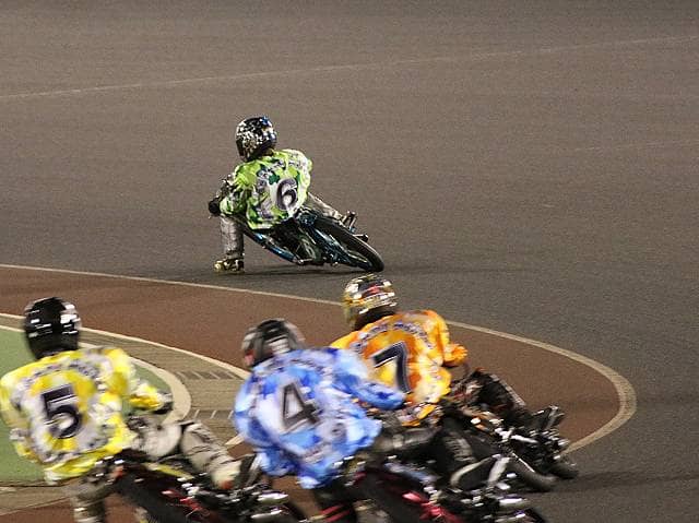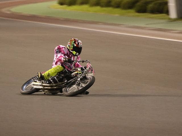 3・青山周平が好スタートを切って、逃げ態勢に入る。2番手に6・木村武之、7・永井大介が1・加賀谷建明をかわして3番手に上がってくる。青山はセーフティーリードを保ちながら、8周回を逃げ切り1着。序盤の隊列のまま2着は木村、3着は永井が入線した。