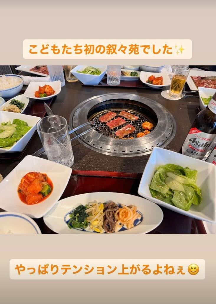 「こどもたち初の叙々苑でした✨やっぱりテンション上がるよねぇ😊」と綴り、ストーリーを更新。