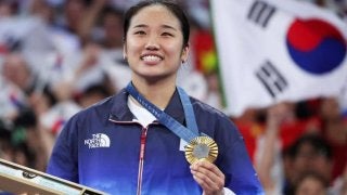 パリ五輪で金メダルを手にしたアン・セヨン。その舞台裏が次々と明るみになり、物議を醸している。(C)Getty Image…