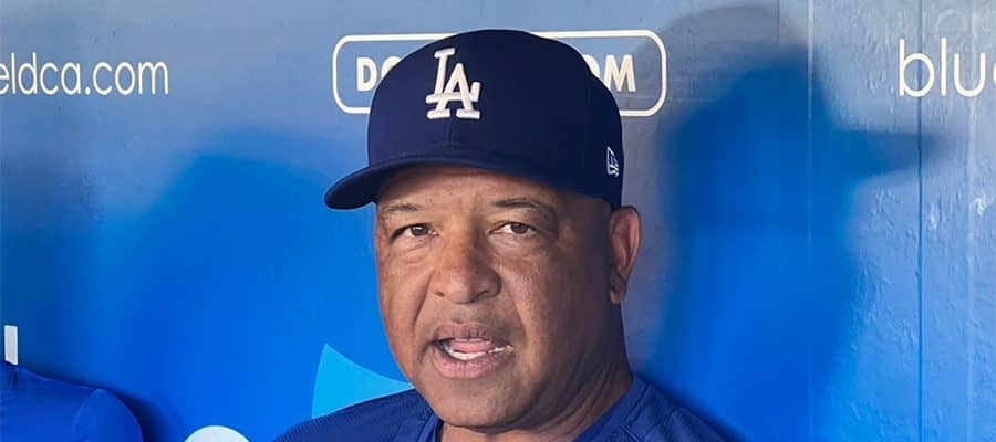 試合前の取材に応じたドジャースのデーブ・ロバーツ監督【写真:川村虎大】