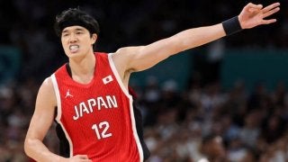 スタッフへ感謝の気持ちを示した渡辺(C)Getty Images パリ五輪、熱戦をくり広げた男子バスケットボール日本代表…
