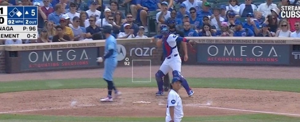 8月18日(日本時間8月19日)に米・イリノイ州シカゴののリグレー・フィールドで行われたシカゴ・カブス対トロント・ブルージェイズの一戦で、カブス・今永昇太の釣り球を振らされて三振を喫した相手打者が見せた“凡退リアクション”が、野球ファンの間で話題となっている。