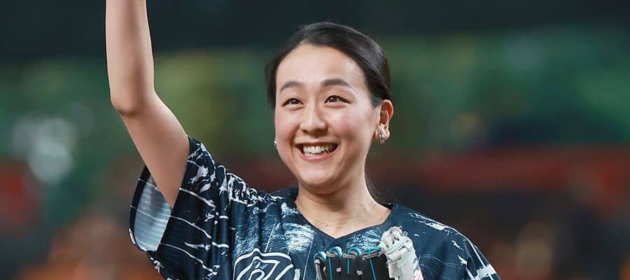始球式に登場した浅田真央さん【写真提供:産経新聞社】