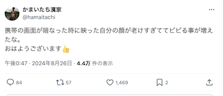 「自分の顔が老けすぎててビビる」超人気芸人 最新投稿が話題に 衝撃告白にコメント殺到? | 話題の投稿