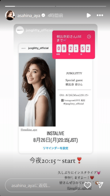 朝比奈の久々のインスタライブは、26日の夜20時15分からスタートだ。