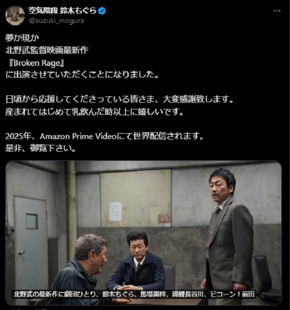 空気階段 鈴木もぐら、北野映画最新作に出演決定! | 話題の投稿