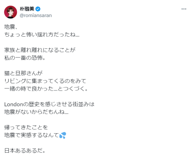 声優の朴璐美が28日に自身のXを更新した。【画像】朴璐美がおうちごはんを紹介!すっごい豪華!「地震、ちょっと怖い揺れ方だ…