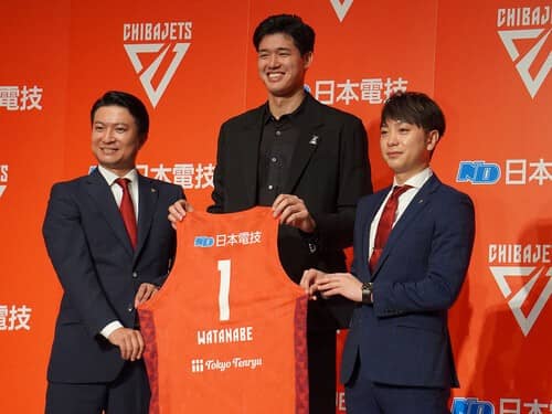 8月27日に東京都内のホテルで行なわれた記者会見で、渡邊は、公の場では初めてジェッツの一員として紹介された。