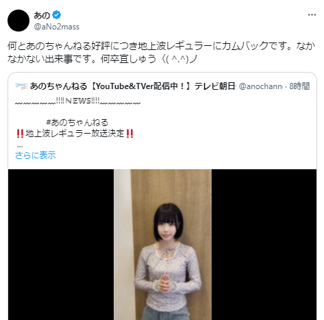 あのちゃんねるが地上波レギュラー放送復活!「なかなかない出来事です。」ファン待望の声 | 話題の投稿