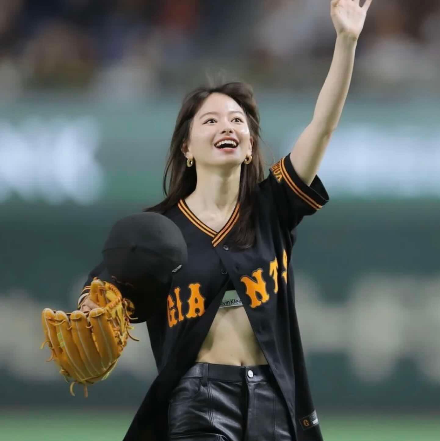 2023年6月、東京ドームに登場。サードユニフォームを着用したヘソ出しコーデで、見事なストライク送球を披露した。
