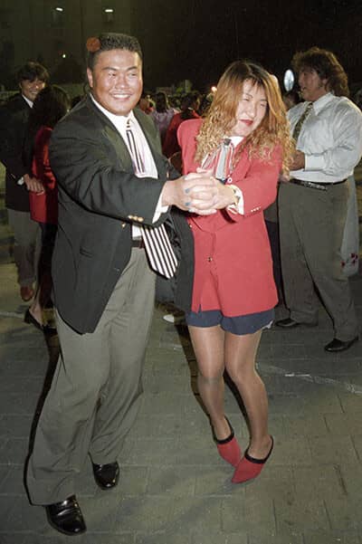 1995年に北朝鮮で開催された「スポーツと平和の祭典」のフィナーレで踊る佐々木健介と北斗晶