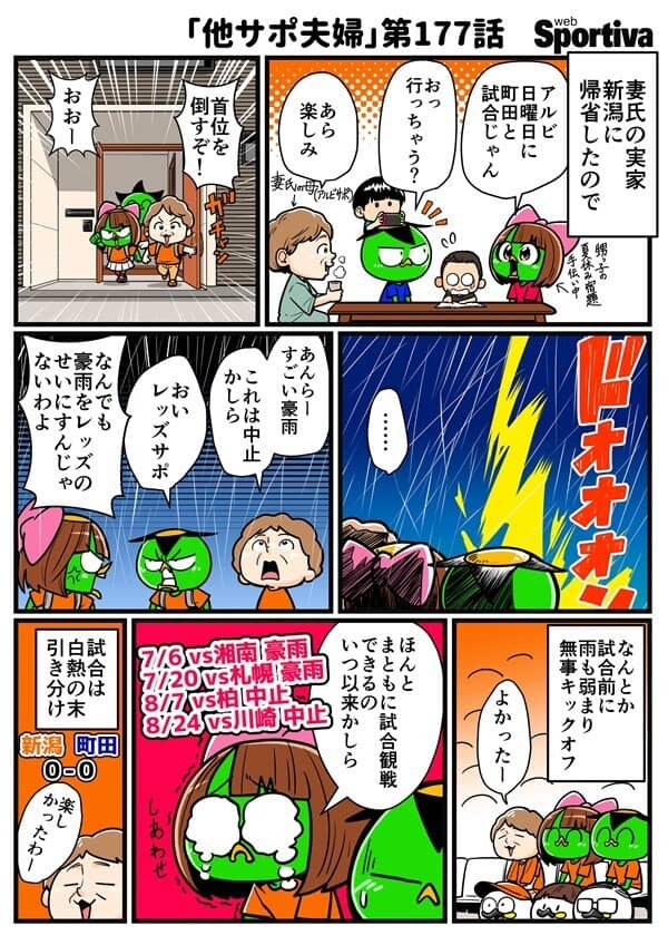 他サポ夫婦が妻氏の実家に帰省しました。新潟と町田の試合に出かけたようです。しかし......。