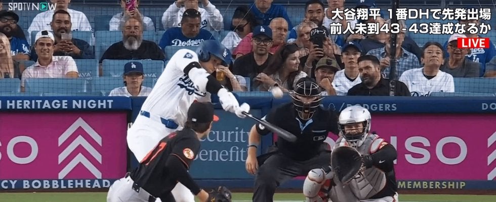 43号本塁打への期待が高まった打席だったが、大谷はこの試合5打数無安打と3試合ぶりにノーヒット。メジャー前人未到の「43-43」達成はおあずけとなった。